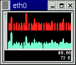 Beneath the graphs, you'll find two text entries which can display either your total connection time and the bytes received per second or your total cost per session, as well as the bytes received per second.