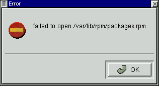 If you're getting the error message similar to "failed to open /var/lib/rpm/packages.rpm" (see Figure 7-2) it's likely due to the your permissions.