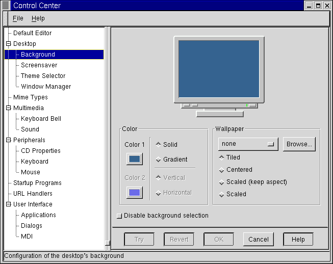Finally, click the option to Disable background selection if you would prefer to set the background through another means (such as through your window manager's configuration program).
