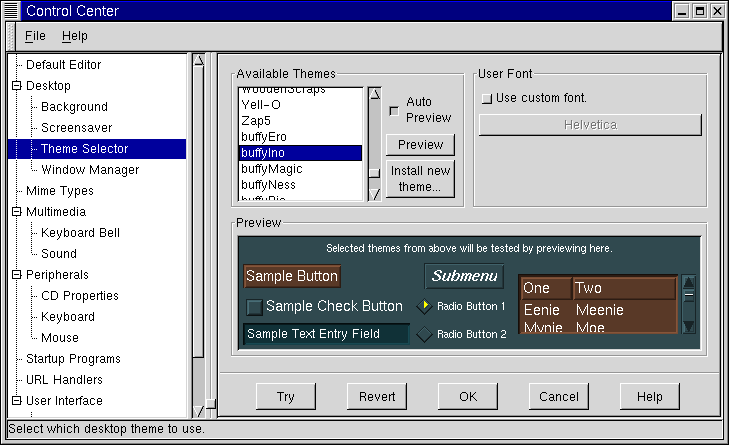 Not sure you'll be happy with your selections? Click on the Try button to see what your desktop will look like with your changes. If you don't like it, just click on the Revert button to return to your original settings. |