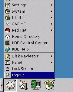 To log out from GNOME, click once on the Main Menu Button on the Panel and drag your mouse cursor to the first item, labeled Log out (as in Figure 1-7).