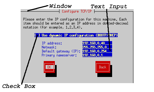 Figure 10-1. Installation Program Widgets as seen in Configure TCP/IP
