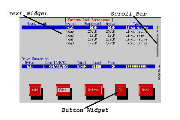 Figure 10-2. Installation Program Widgets as seen in Disk Druid
