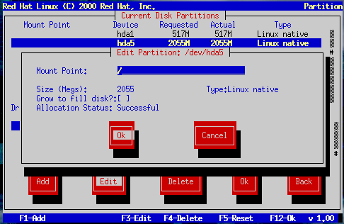 To add a new partition, select the Add button and press Space or Enter. The Edit New Partition dialog (Figure 10-16) appears.