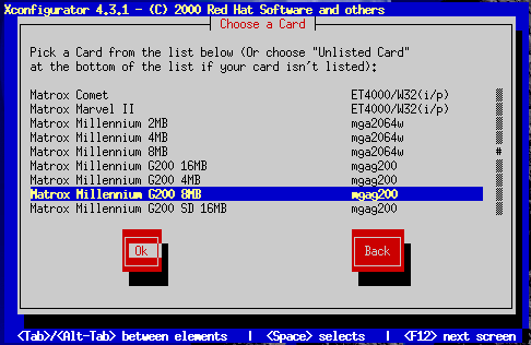 If the installation program cannot detect your video adapter, you'll see Figure 10-38. In this case, select your video card from the list using the arrow keys and Space.