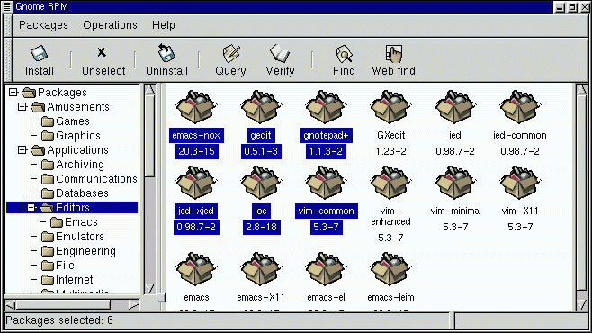 To select a single package, click on it with the left mouse button. You'll notice that highlighting will appear around the package's title (as shown in Figure 10-2). To unselect it, either click on an empty space in the display panel with the left mouse button, or click on the Unselect button on the toolbar.