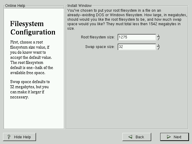 Swap space acts like virtual memory. In other words, data is written to a swap partition when there is not enough RAM to store the data your system is processing. The installation program will set swap to 32MB as a default. You can choose to increase the swap size if desired, but there is no need to create a swap space larger than 256MB.
