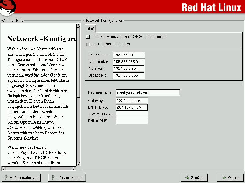Zurück | Kapitel 4 Installation von Red Hat Linux | Vor |