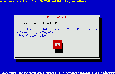 Das Installationsprogramm sucht jetzt nach Ihrer Grafikkarte. Wenn die Karte gefunden wurde, klicken Sie auf OK, um fortzufahren.